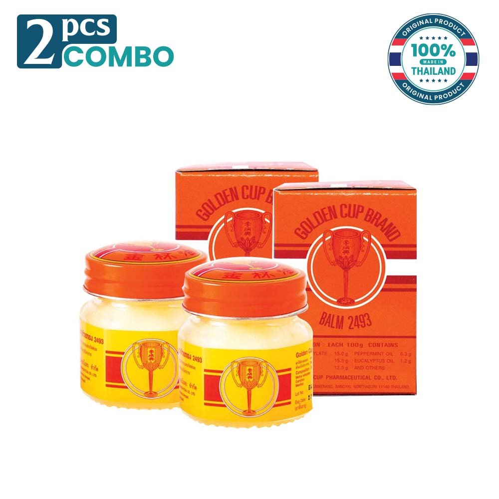 Golden Cup Balm 2493 12g is a well-known traditional Thai herbal balm widely used for relieving muscular pain, joint discomfort, insect bites, nasal congestion, headaches, and dizziness. Manufactured by Golden Cup Pharmaceutical Co., Ltd. in Thailand, this iconic yellow balm is recognized for its warming effect and distinctive herbal aroma.